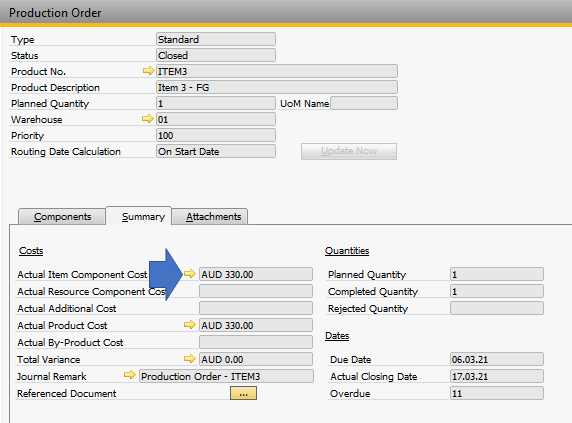 Assume component and finished goods are setup as Weighted Average in Item Master.