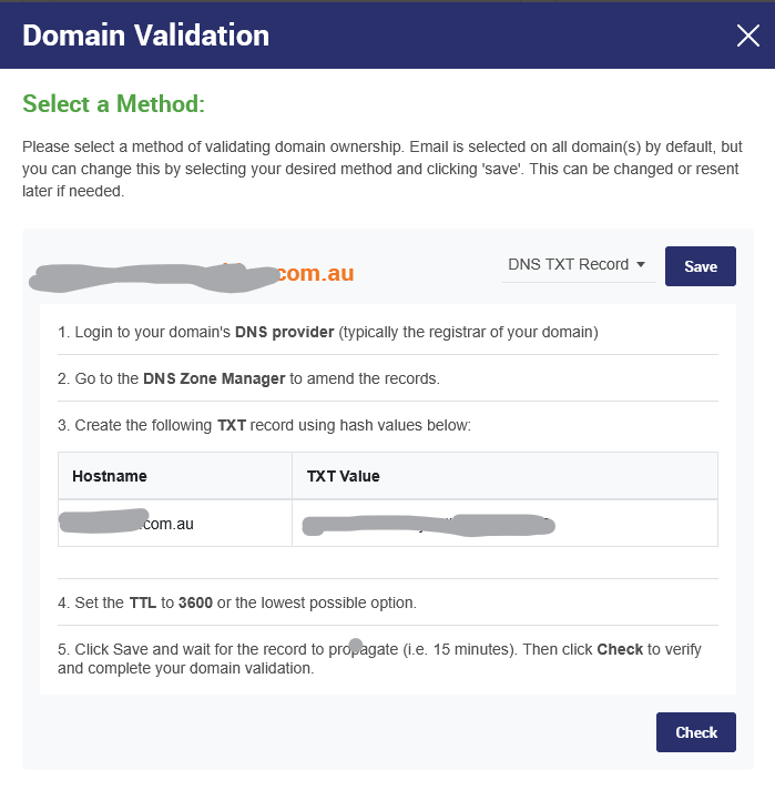 The Time to Live (TTL) for a TXT record, which indicates how long a DNS server should cache the record. is often set between 1800 to 3600 seconds (30 minutes to 1 hour) for general purposes. Follow the recommendation from the SSL Certificate Service Provider.