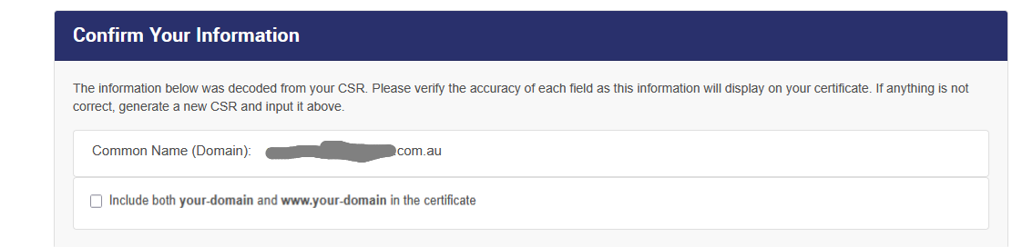 6. Copy content of CSR to any online SSL certificate checker/decoder online to verify that the information you provided are correct and no issue on the certificate itself.