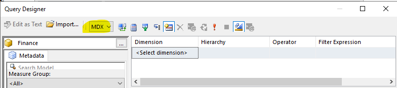 Below error message appears when DAX query is selected in the SSAS Dataset.