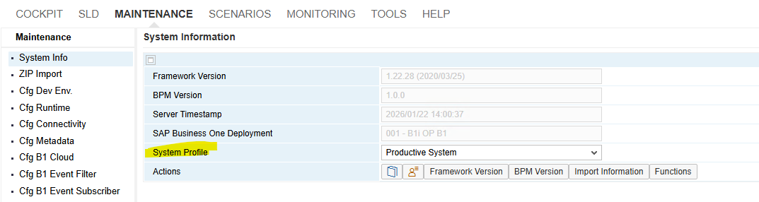 SAP Business One recommends using the UI's System Profile to switch modes, you can manually configure the integration service for development by modifying the xcellerator.cfg file.